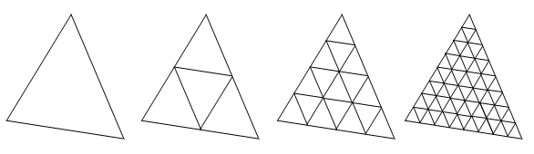 triangulaires situées dans le plan de F selon le schéma ci-contre (n = 0, 1, 2, 3 de gauche à droite, multiplication
