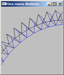 de rayon intérieur = 6.5 et de rayon extérieur = 7.5 (hauteur des dents = 1)