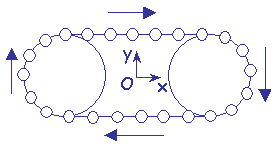 On souhaite programmer en OpenGL une chenille schématisée. Elle est constituée de n sphères de rayon r régulièrement réparties selon le schéma ci-contre.