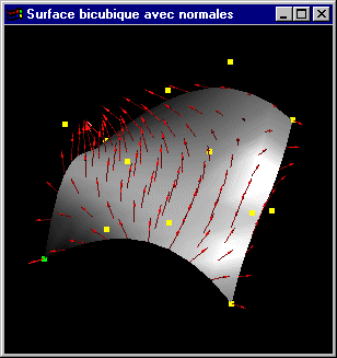 Q(s,t) = S.M. La modification d'un seul des 16 points de contrôle entraîne la modification de l'ensemble de la surface.