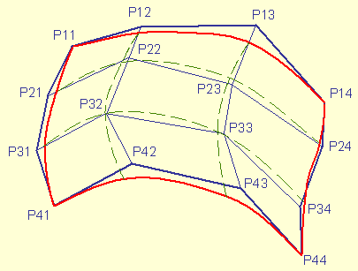 Le choix des matrices M et M' permet d'adapter les caractéristiques de la surface tracée aux spécifications désirées. Interprétation intuitive Une interprétation intuitive de ces surfaces consiste à considérer qu'une telle surface est générée à partir d'une matrice carrée de 4x4 points de contrôle. Les 4 lignes de cette matrice permettent de générer m séries de 4 points de contrôle, chacune de ces m séries permettant de générer n points modélisant la surface, soit donc au total m*n points. Ces m*n points définissent un maillage quadrangulaire traçable.