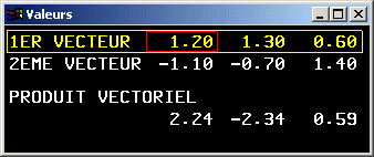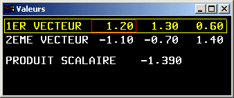 Si q est l’angle entre Cette propriété explique que le produit scalaire de deux vecteurs est égal à 0 si ces deux vecteurs sont orthogonaux. Si on inverse l’un des deux vecteurs, le résultat de leur produit scalaire est négativé. Si les deux vecteurs sont normés, leur produit scalaire est égal au cosinus de l'angle qu'ils forment. Produit vectoriel entre deux vecteurs