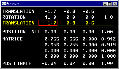 Les translations sont modélisées à partir des valeurs contenues sur la n+1ième colonne de la matrice de transformation