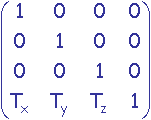 tandis que les rotations et mises à l'échelle utilisent plus classiquement la sous-matrice n * n supérieure gauche. La n+1ème coordonnée d'un vecteur est initialisée à 1.0 pour représenter une position, ou à 0.0 pour représenter une direction (invariante par translation).
