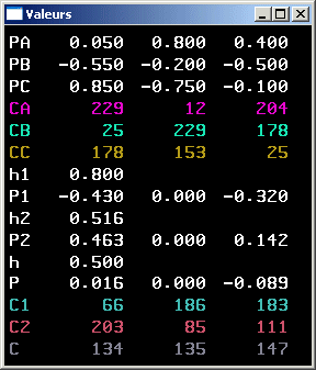 La fenêtre texte donne les différentes valeurs numériques caractéristiques.