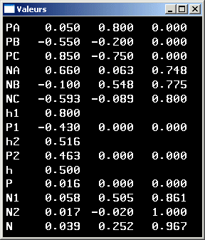 simpleBitmapOutput(REGULAR8x13,"N  : %6.3f %6.3f %6.3f",n[0],n[1],n[2]) ;