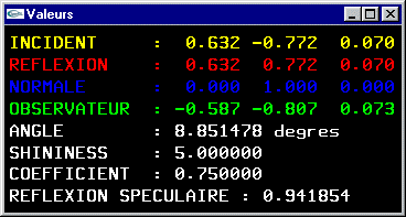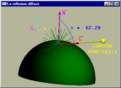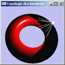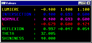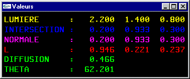 Si le produit scalaire donne une valeur négative le point P est masqué par la surface à laquelle il appartient et n'est donc pas éclairé. Dans ce cas L = 0.0.