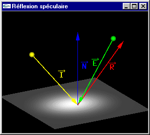 On appelle réflexion spéculaire le phénomène de réflexion de la lumière dans un cône plus ou moins ouvert autour d'une direction privilégiée. A l'extrème, ce cône étant totalement fermé, la réflexion spéculaire est alors parfaite et ne s'effectue que selon l'axe privilégié (effet miroir parfait). On ne voit plus le reflet des sources lumineuses ponctuelles.