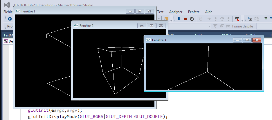 glutMainLoop ouvre les 3 fenêtres et lance la boucle principale de gestion des affichages et des événements.
