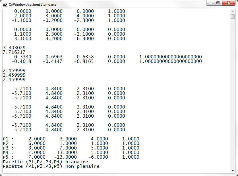 printf("Facette (P1,P2,P3,P4) planaire\n");