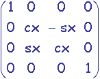 On établit alors que qx = atan2(-vy',-vz') qui définit R2.