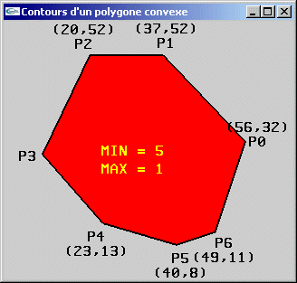 TD 8: Le remplissage de polygones convexes et de zones de pixels Exercice 1: Remplissage de polygones convexes On souhaite effectuer le remplissage d'un polygone convexe défini dans un espace bitmap (à deux dimensions). Ce polygone possède un nombre arbitraire de sommets a) Définir une structure de données en langage C permettant le stockage informatique d'un tel polygone. b) Ecrire une fonction permettant de déterminer les indices des sommets les plus en haut (coordonnée y maximale) et en bas (coordonnée y minimale) d'un polygone.