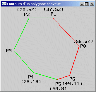 c) Ecrire une fonction réalisant l'affichage OpenGL des contours droit et gauche d'un polygone. Le contour droit est affiché en rouge. Le contour gauche est affiché en vert.