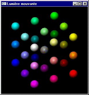 c) Modifier la scène précédente pour y intégrer un éclairage sous la forme d'une source lumineuse directionnelle blanche éclairant depuis la droite.