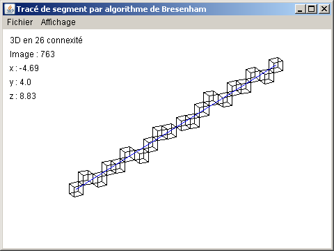 Meilleure solution : Les pixels ajoutés sont placés Exercice n°2 Reprendre l'algorithme initial de l'exercice n°1 pour le généraliser à la rastérisation d'un segment de droite 3D dans un espace voxel 3D en 26-connexité.