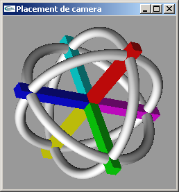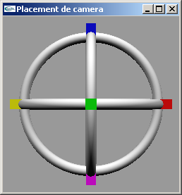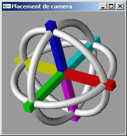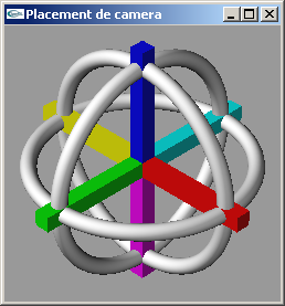 Exercice n°1 Implanter la fonction reshape d'un programme OpenGL + GLUt permettant de visualiser cette scène au moyen d'une caméra de visualisation en perspective placée à l'origine, orientée selon la direction -z en respectant une distance de 100.0 entre la caméra et la scène.