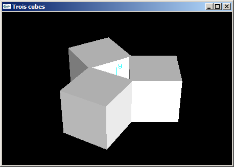 (4) Programmer une scène OpenGL en plaçant 3 cubes de coté 2.0 aux 3 sommets d'un triangle équilatéral