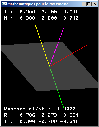 TD n°9 : Calcul des rayons réfléchi et transmis pour le lancer de rayons, test d'intersection pour le lancer de rayons a) La formule suivante permet le calcul du rayon réfléchi sur une interface au niveau d'un point d'incidence: