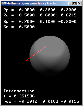 c) Définir une classe sphère. d) Définir une classe rayon. e) Implanter une méthode de test de l'existence d'une intersection entre un rayon et une sphère.