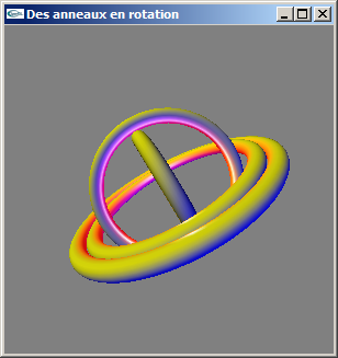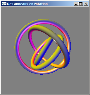 e) Modifier le programme obtenu à l'issue de la question (d) pour pouvoir activer/désactiver au clavier les trois lumières. Ajouter une quatrième lumière ambiante de couleur gris moyen (0.5, 0.5, 0.5).