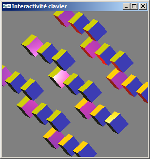 et glPopMatrix ailleurs qu'en début et fin de fonction: (2) Reprogrammer en OpenGL la scène de la question (1) de telle manière que les cubes aient une de leurs faces orientée vers l'origine du repère. (3) Reprogrammer en OpenGL la scène de la question (2) en utilisant les fonctions glPushMatrix et glPopMatrix pour rendre les objets indépendants les uns des autres et simplifier l'écriture de la fonction scène.