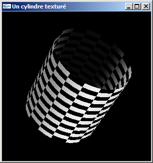 On pourra s'inspirer de la fonction ci-dessous en lui ajoutant le code manquant nécessaire au texturage: void mySolidCylinder(float hauteur,float rayon,int ns,int
