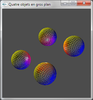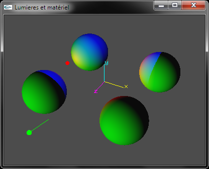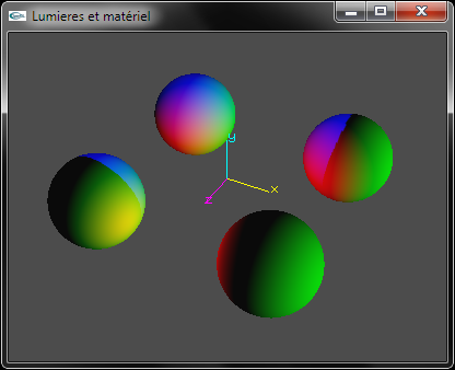 TP n°3 : Lumières et matériaux en OpenGL Implanter les exercice du TD n°4 sur la scène du TP n°2 constituée de 4 sphères. Solution
