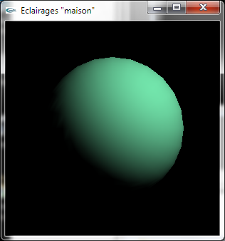 b) Développer le code source OpenGL permettant de configuer la lumière n°1 en tant que lumière directionnelle de direction d'incidence (1.0, 0.0, 0.0). Sa composante d'émission diffuse est verte. Sa composante d'émission spéculaire est blanche.