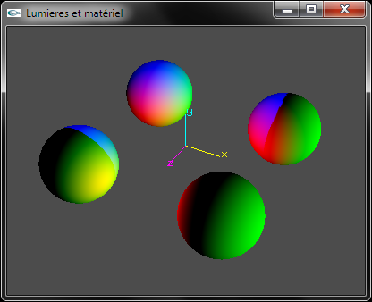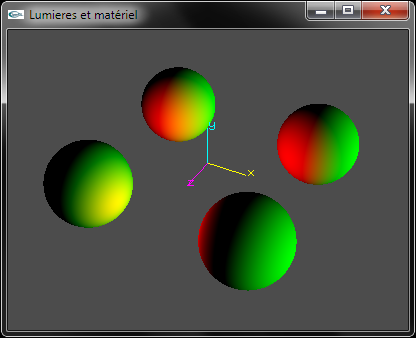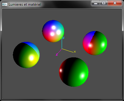TP n°5 : Lumières et matériaux OpenGL Implanter les exercices du TD n°4. On pourra se servir de la fonction scène suivante pour la modélisation géométrique de la scène constituée de 4 sphères.
