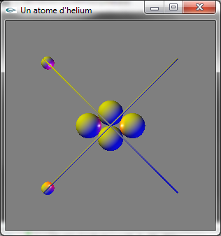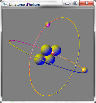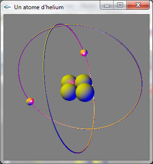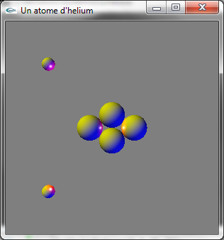 On souhaite modéliser et animer un atome d'hélium. L'hélium a pour numéro atomique 2. Il est le deuxième élément chimique le plus fréquent