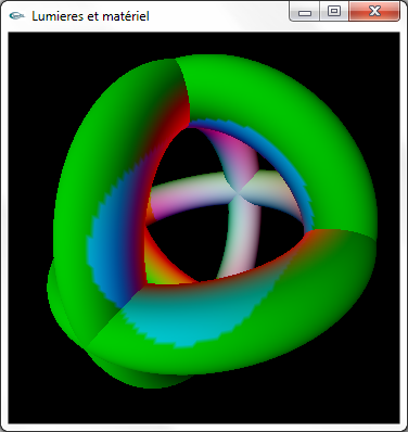 Le fichier source LumieresEtMaterielBase.cpp implante un programme d'affichage OpenGL