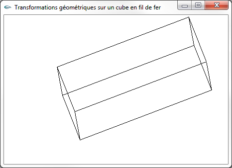 b) Utiliser la fonction de la question (a) pour développer un programme OpenGL dans lequel est modélisé un cube représenté en fil de fer placé, orienté