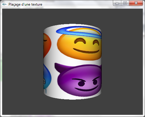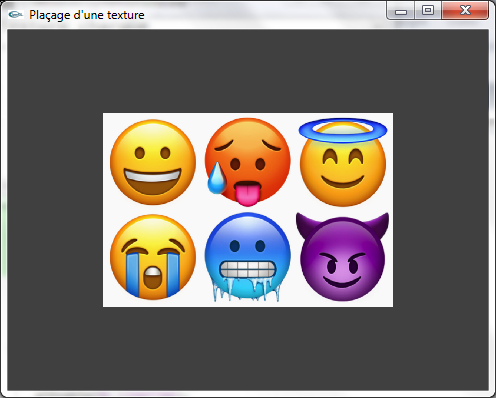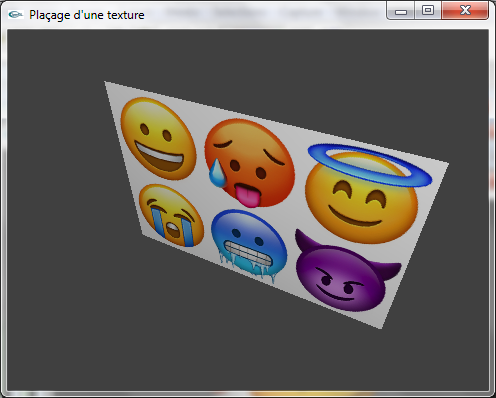 c) Modifier le code source de la question (b) pour que le rectangle soit muni d'une texture le recouvrant entièrement utilisant l'image contenue dans le fichier Emojis.png.