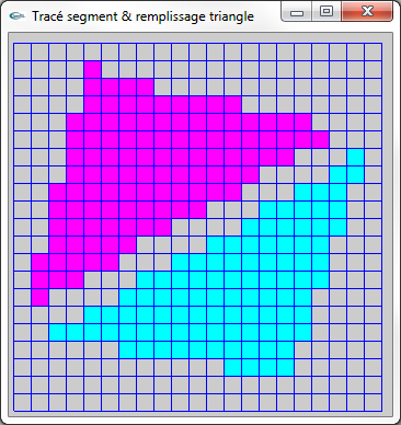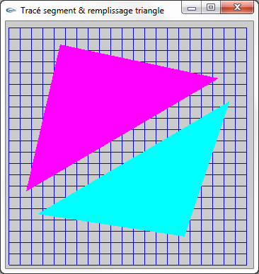 c) Modifier le programme de la question (a) pour y intégrer une fonction de rasterisation d'un triangle défini par 3 sommets et la tester sur