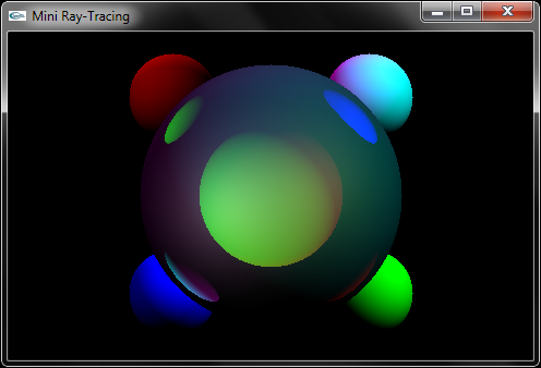 par lancer de rayons. Les scènes sont constituées de sphères. Le programme ouvre deux fenêtres. Dans la première, un Z-Buffer est utilisé pour l'affichage.