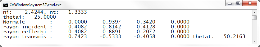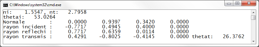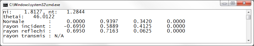 b) Concevoir une méthode de la classe Dir3D permettant de calculer la direction d'un rayon transmis à l'interface entre deux milieux lors
