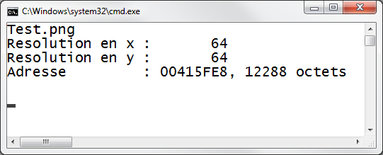 obtenu est l'adresse 0x00000000 (NULL). Si le chargement aboutit, un message l'indique et la résolution de l'image est affichée ainsi