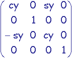 Transformation 2: Une rotation d'angle qy autour de l'axe Oy pour déplacer le point Pv dans le demi plan yOz de z négatif. Ce mouvement revient à "tourner la tête". Elle est notée R1.