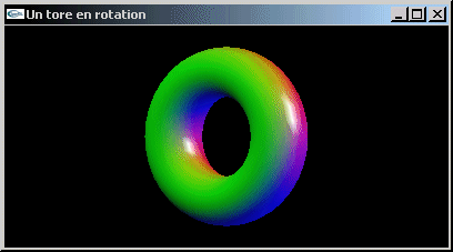 TP 3: L'animation en OpenGL Exercice 1 Modéliser une animation au cours de laquelle un tore centré sur l'origine et orienté selon l'axe Oz tourne autour de l'axe Oy. Exercice 2 Modifier la scène précédente pour y gérer une fonction "stop and go" associée à la touche de clavier Espace (une frappe sur Espace interrompt l'animation, une nouvelle frappe la relance de la position d'arrêt, ...) Exercice 3 Modifier la scène précédente pour agrémenter l'animation d'un second mouvement consistant en une déformation cyclique selon l'axe x. Les 180 premiers degrés d'un tour déforme selon cet axe d'un rapport 1 à un rapport r. Les 180 degrés suivant ramènent la déformation du rapport r au rapport 1.