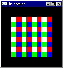 a) Ecrire une fonction remplissage1 permettant de remplir la bitmap b avec la couleur c à partir du pixel germe de coordonnées (x, y) avec comme couleur limite cl. b) Ecrire une fonction remplissage2 permettant de remplir la zone de pixels contigus de même couleur de la bitmap b avec la couleur c à partir du pixel germe de coordonnées (x, y). TD 9: DEF, USE, WWWInline et WWWAnchor en VRML Voir dans le cours l'utilisation de: Soit une scène composée de 4 parallélipipèdes rectangles disposés en 2x2 objets le tailles (3, 1, 1) et (1, 3, 3) placés en positions centrées sur (1.5, 0, 0) et (3.5, 0, 0) pour le premier couplet et (-1.5, 0, 0) et (-3.5, 0, 0) pour le deuxième couplet.