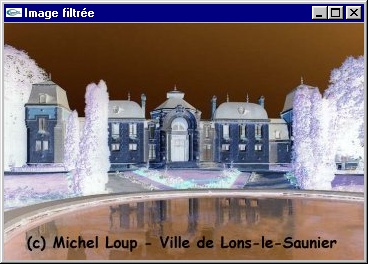 Négation (Inversion du spectre) La teinte des pixels est déplacée de manière à rapprocher, généralement dans les mêmes proportions, les composantes de vert, de rouge et de bleu du minimum (resp. du maximum) pour assombrir (resp. éclaircir) l'image.