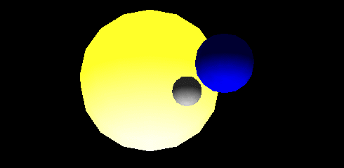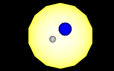 intensity 1 location 0 0 0 color 1 1 0.9 } Material { emissiveColor 1 1 0 } Sphere { radius 10 } Separator { Translation