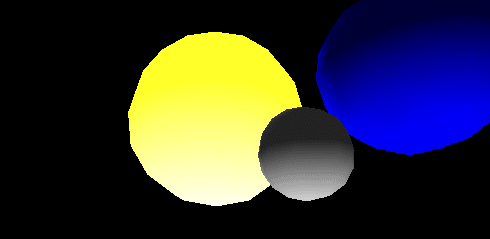 La sphère définie après Material est affectée de la couleur jaune. Il s'agit de la couleur quelle réfléchit par diffusion.