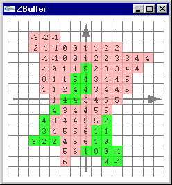 -¥, utilisée comme valeur courante de comparaison en cours d'exécution du Z-Buffer)